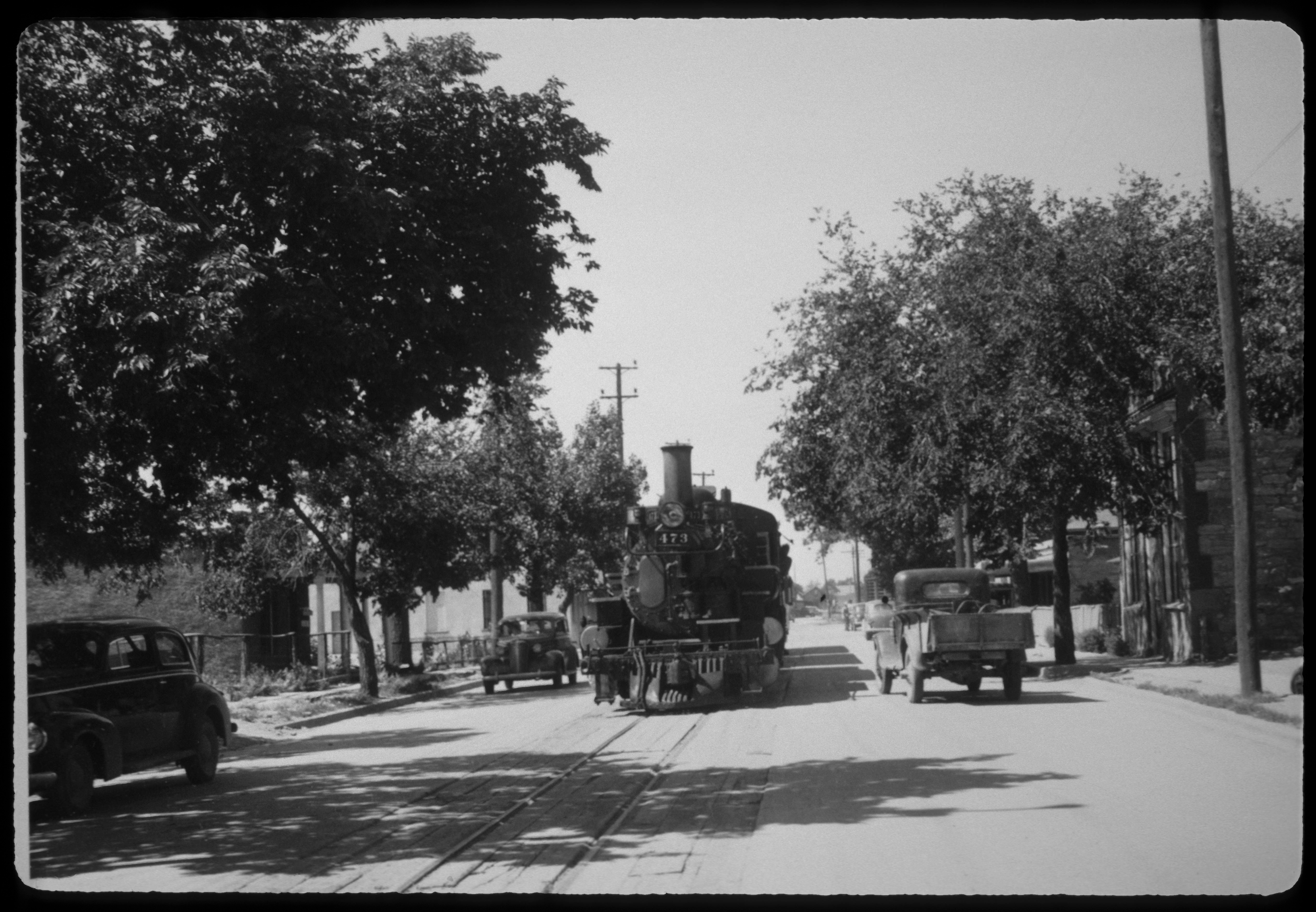 Rio Grande Avenue wasn’t built yet when the railroad operated, so nobody was bothered by trains rolling down the middle of it. But the same trains rumbled down the middle of Guadalupe Street next to cars and trucks. Maybe this arrangement seemed less strange when it started than it does today because cars weren’t in use yet when the rails were laid.